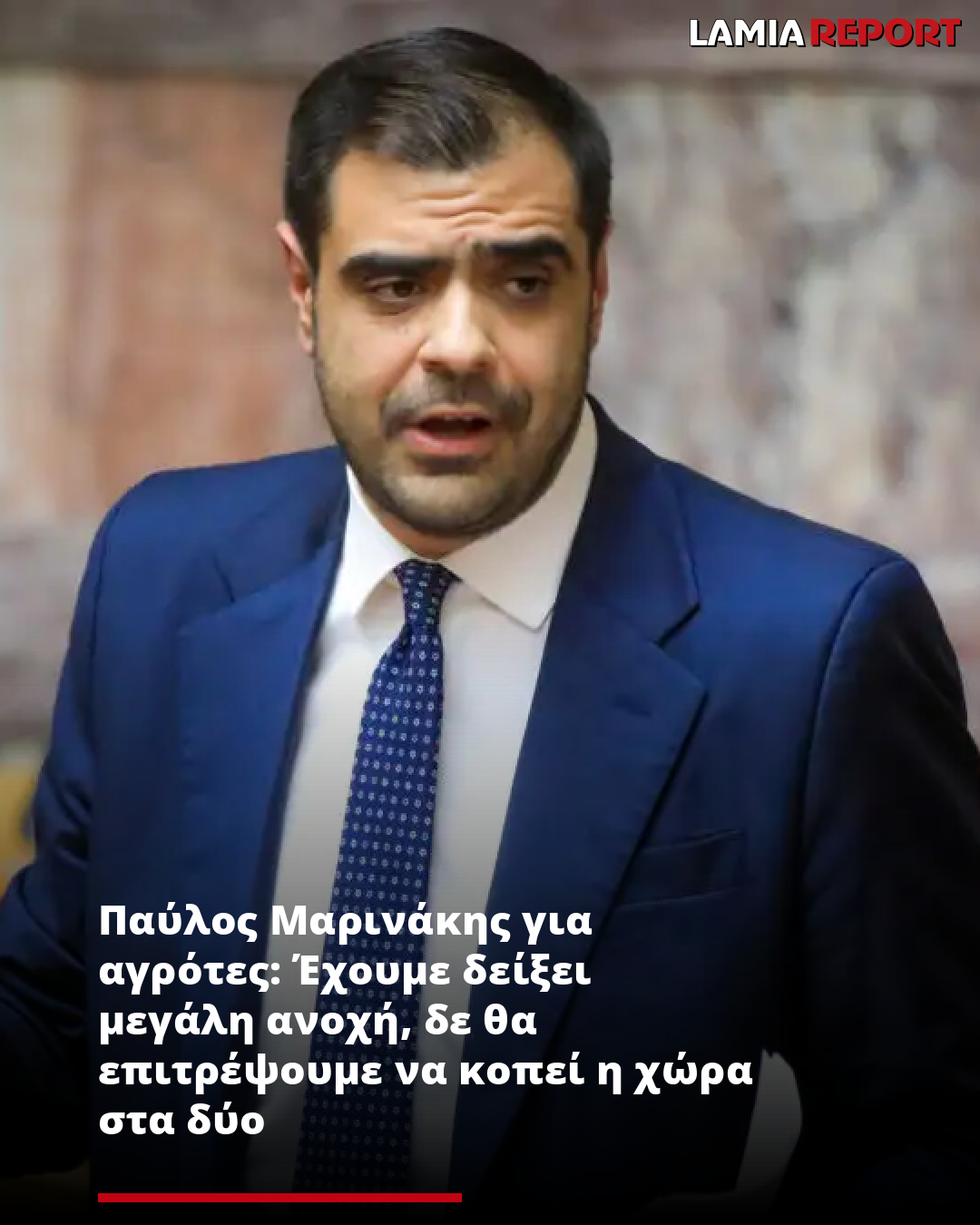 Παύλος Μαρινάκης για αγρότες: Έχουμε δείξει μεγάλη ανοχή, δε θα επιτρέψουμε να κοπεί η χώρα στα δύο