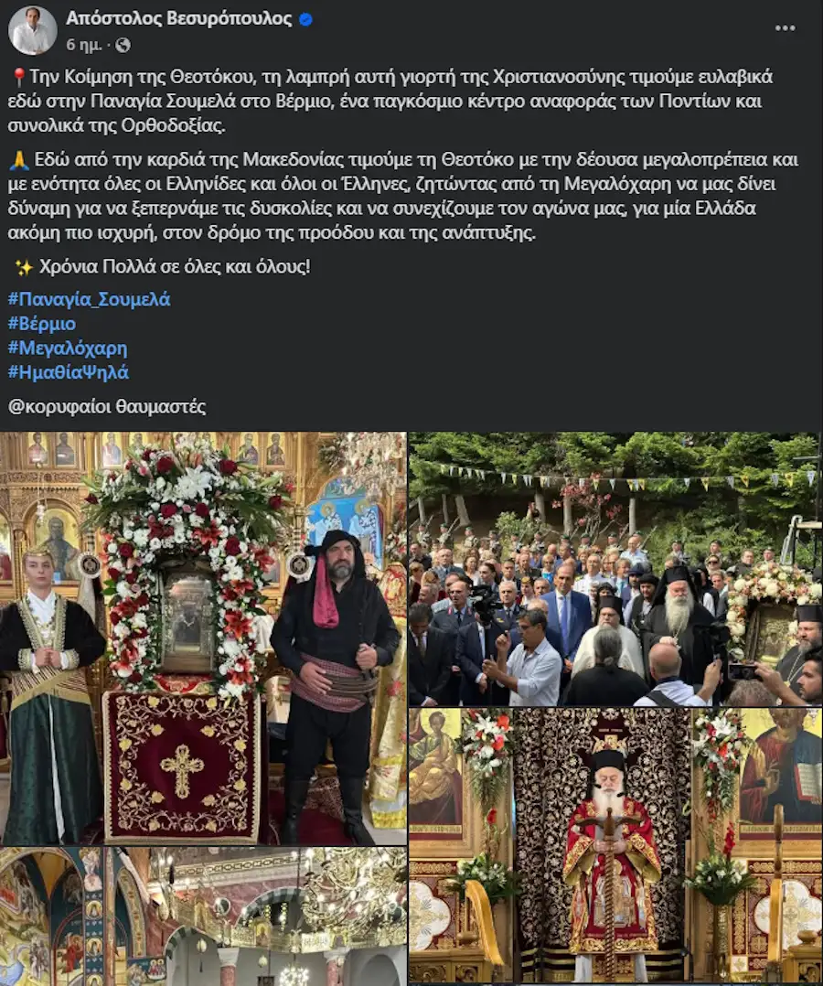 Πριν από 6 μέρες, ανήμερα του 15αύγουστου είχε κάνει μία ανάρτηση από τη γενέτειρά του, τη Βέροια, όπου βρισκόταν. Ο 59χρονος βουλευτής ταξίδεψε μέχρι τη Χαλκιδική για ολιγοήμερη ανάπαυση και ξεκούραση, κανείς όμως δεν περίμενε αυτή την τραγική κατάληξη.