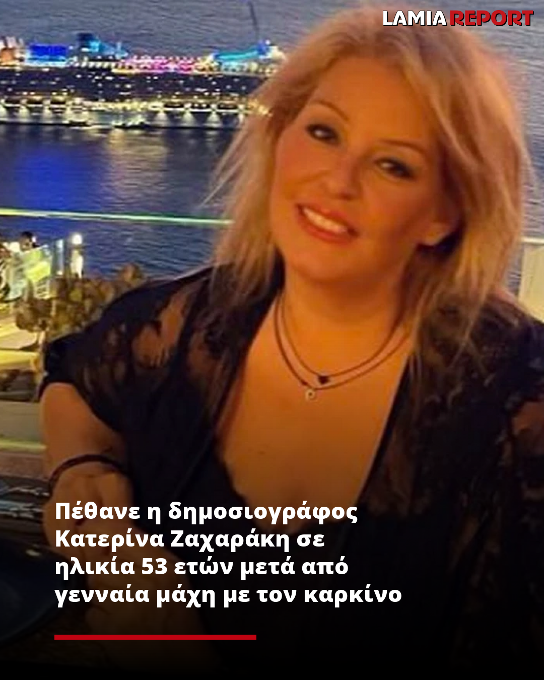 Η δημοσιογράφος Κατερίνα Ζαχαράκη έφυγε από τη ζωή σε ηλικία μόλις 53 ετών μετά τη δίμηνη νοσηλεία της σε ιδιωτική κλινική της Θεσσαλονίκης, δίνοντας γενναία μάχη με τον καρκίνο.