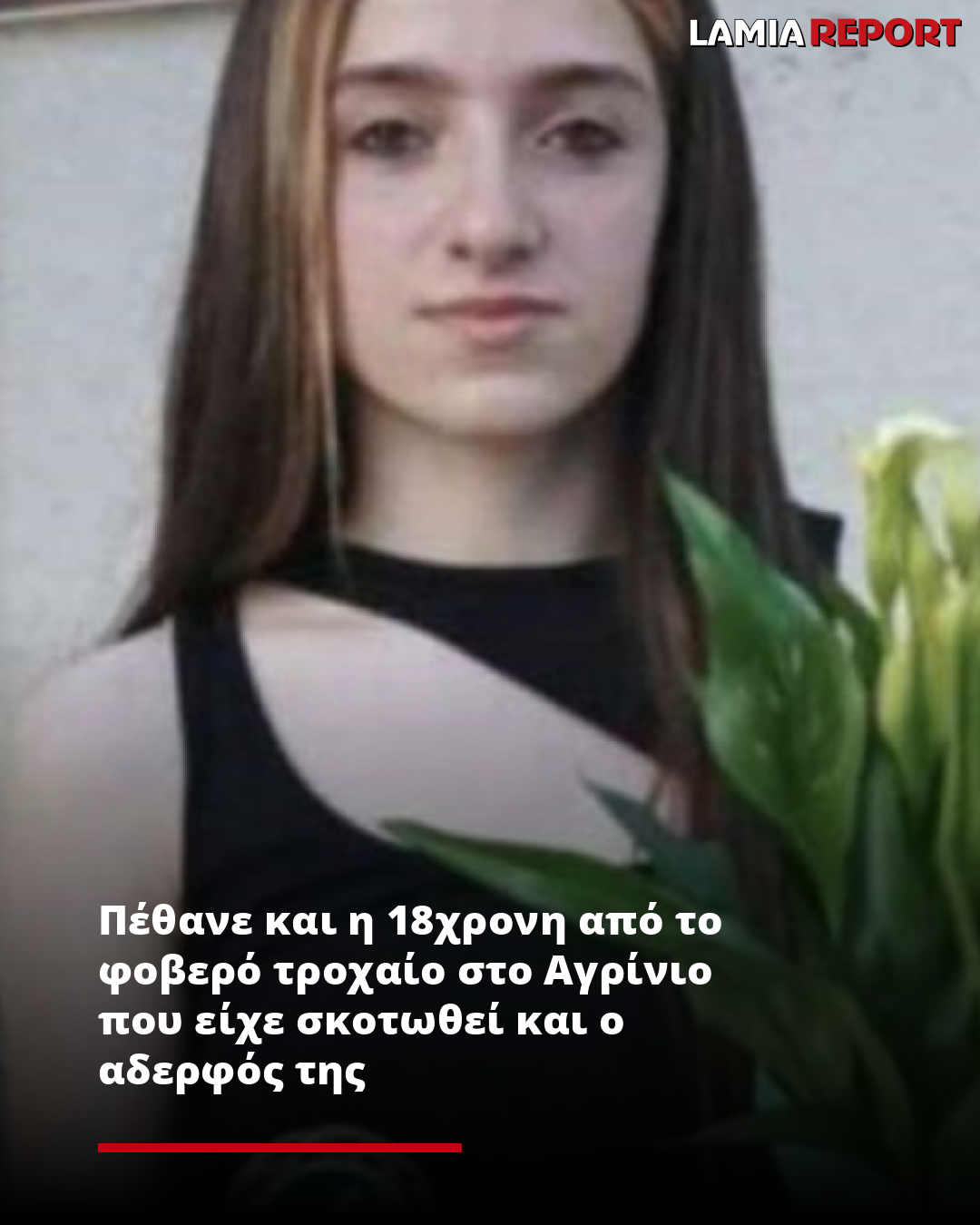 Έχασε τη μάχη για τη ζωή η 18χρονη Χαριτίνη Καραχρήστου, που είχε τραυματισθεί σοβαρά στο τραγικό τροχαίο δυστύχημα που σημειώθηκε στις 2 Νοεμβρίου στο Αγρίνιο και βρήκε τραγικό θάνατο ο 20χρονος αδελφός της Άκης.