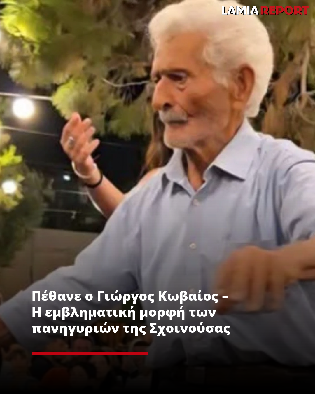 Σε ηλικία 92 ετών πέθανε ο Γιώργος Κωβαίος, μια ιδιαίτερα αγαπητή φυσιογνωμία στη Σχοινούσα, γνωστός για τη διαρκή και έντονη παρουσία του στα τοπικά πανηγύρια και τις πολιτιστικές εκδηλώσεις του νησιού.