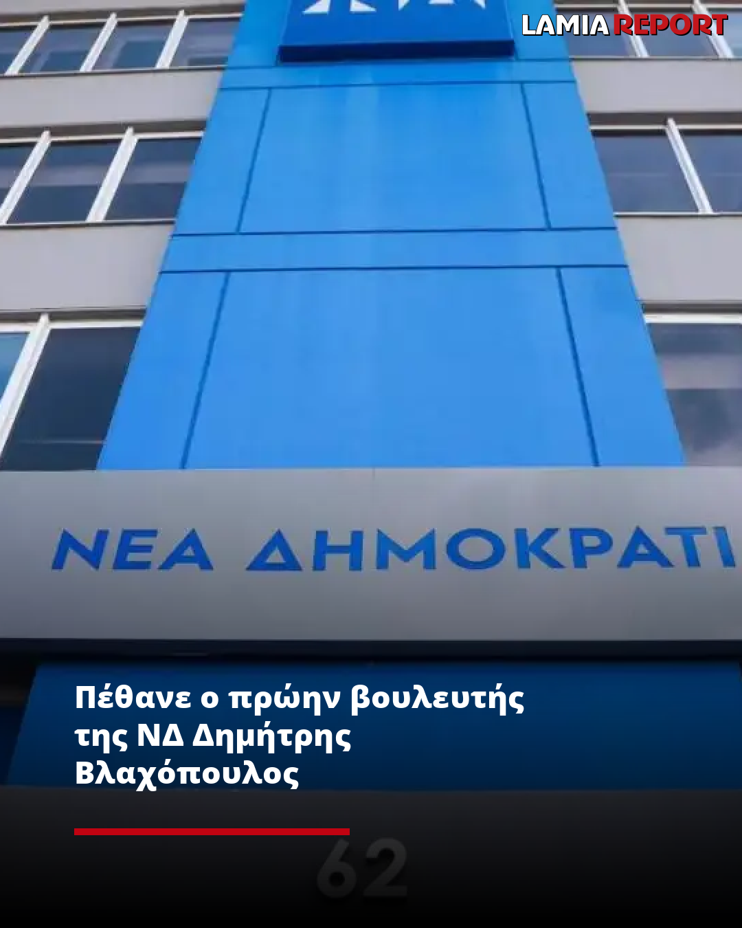 «Ο Δημήτρης Βλαχόπουλος άφησε έντονο αποτύπωμα στη δημόσια ζωή και εργάστηκε με συνέπεια για την ιδιαίτερη πατρίδα του και για την παράταξη. Απευθύνουμε τα ειλικρινή μας συλλυπητήρια στην οικογένεια και τους οικείους του», αναφέρει στην ανακοίνωσή της η ΝΔ.