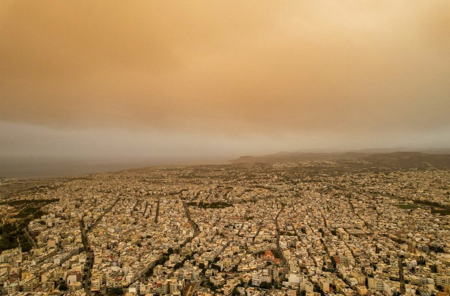 Απόλυτη είναι η κυριαρχία της αφρικανικής σκόνης πάνω από τον ουρανό του Ηρακλείου στην Κρήτη. Η πόλη έχει κατακλυστεί από την σκόνη που ήρθε από την έρημο Σαχάρα. Ο ουρανός είναι γεμάτος με τα μικρά σωματίδια που ταξίδεψαν από την Αφρική και η ατμόσφαιρα έχει γίνει αποπνικτική.