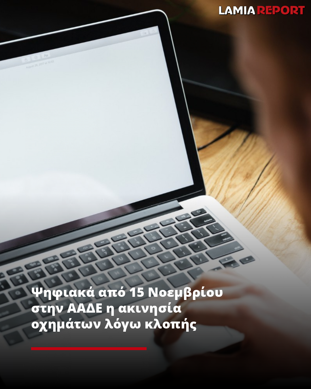 Ψηφιακά και χωρίς να απαιτείται η προσκόμιση άδειας και πινακίδων, θα γίνεται, από την Παρασκευή (15.11.2024), η ακινησία οχημάτων λόγω κλοπής, υπεξαίρεσης ή ανωτέρας βίας, καθώς και η ακινησία οχημάτων που ανήκουν σε αποβιώσαντες ιδιοκτήτες.