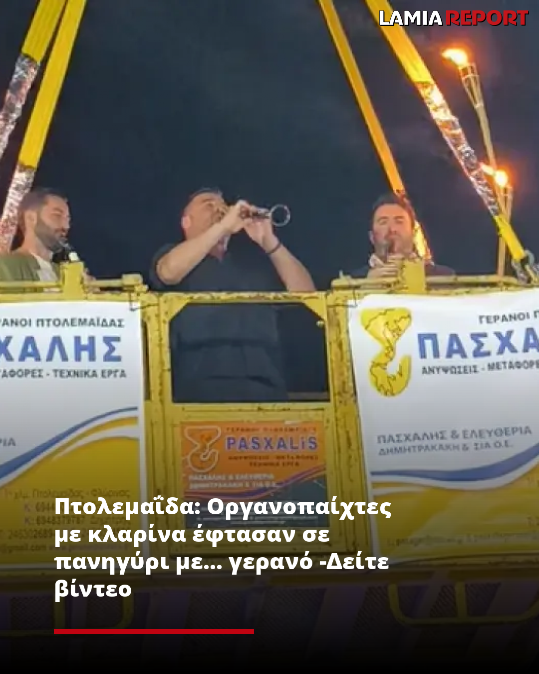 Πτολεμαΐδα: Οργανοπαίχτες με κλαρίνα έφτασαν σε πανηγύρι με... γερανό -Δείτε βίντεο