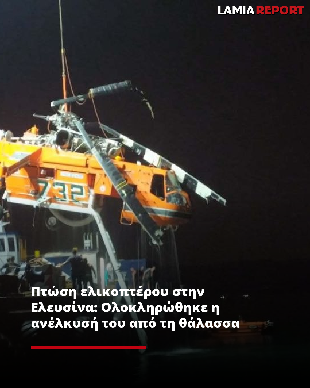 Πτώση ελικοπτέρου στην Ελευσίνα: Ολοκληρώθηκε η ανέλκυσή του από τη θάλασσα