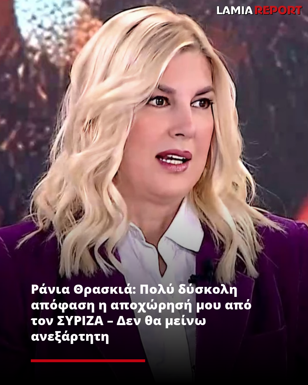 Για μια πολύ δύσκολη απόφαση, που την οδήγησε στην έξοδό της από τον ΣΥΡΙΖΑ, έκανε λόγο η Ράνια Θρασκιά, ανεξάρτητη πλέον βουλευτής, αναφερόμενη στην ανεξαρτητοποίησή της.