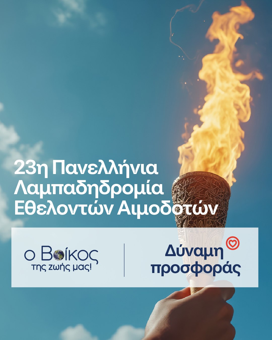 Το φυσικό μεταλλικό νερό Βίκος με σταθερή δέσμευση στην κοινωνική προσφορά και αλληλεγγύη, συμμετέχει για μία ακόμη χρονιά στην 23η Πανελλήνια Λαμπαδηδρομία, την οποία διοργανώνει η Πανελλήνια Ομοσπονδία Συλλόγων Εθελοντών Αιμοδοτών (Π.Ο.Σ.Ε.Α.).