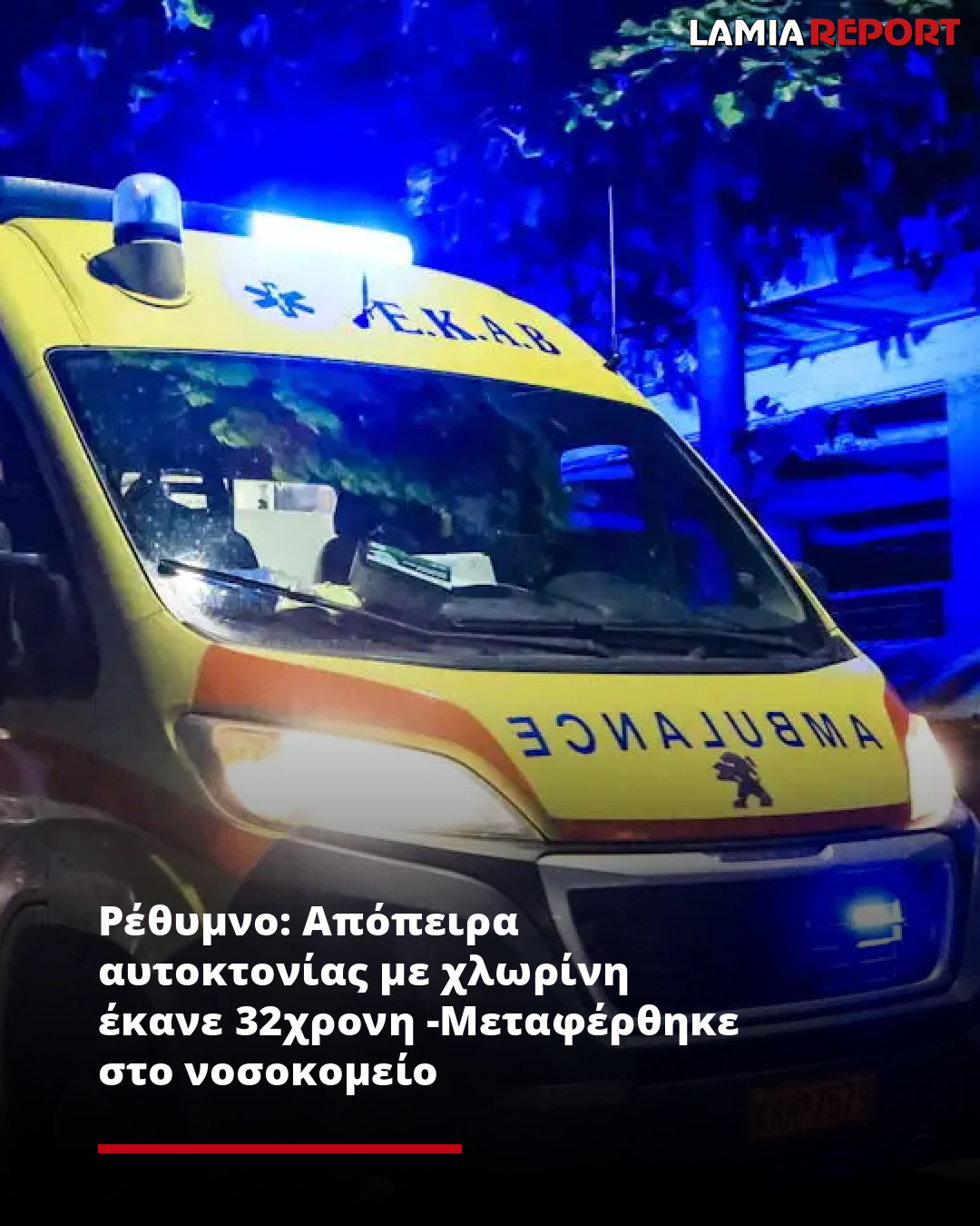 Ρέθυμνο: Απόπειρα αυτοκτονίας με χλωρίνη έκανε 32χρονη -Μεταφέρθηκε στο νοσοκομείο