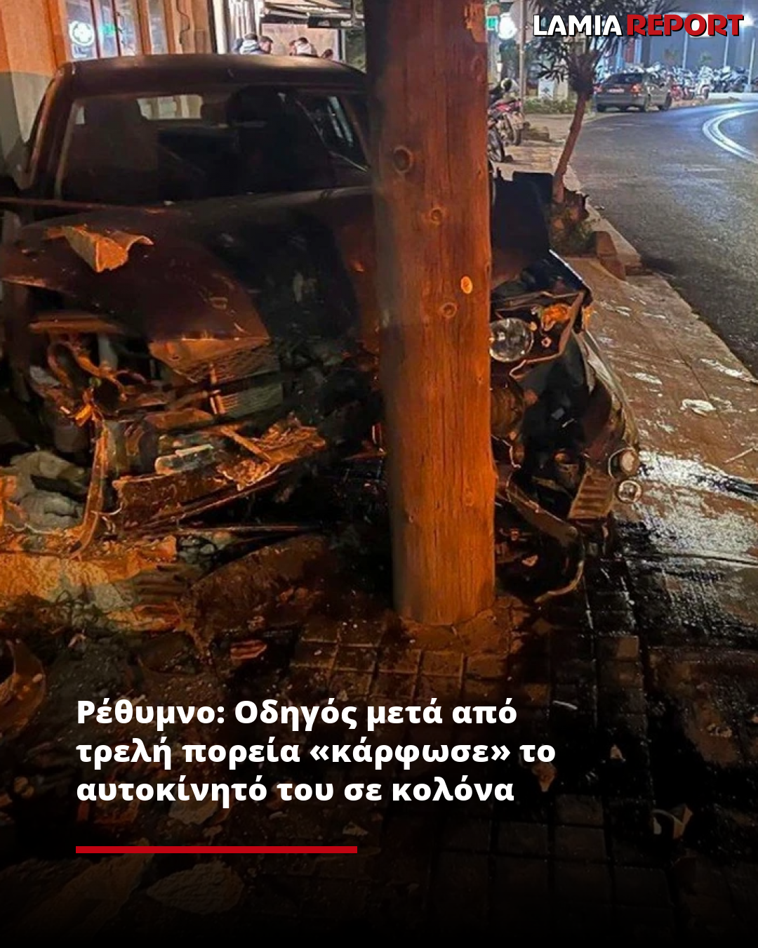 Ρέθυμνο: Οδηγός μετά από τρελή πορεία «κάρφωσε» το αυτοκίνητό του σε κολόνα