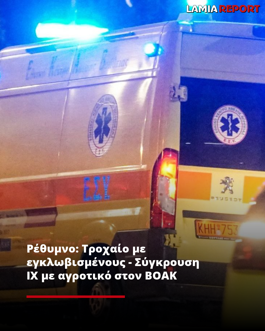 Ρέθυμνο: Τροχαίο με εγκλωβισμένους - Σύγκρουση ΙΧ με αγροτικό στον ΒΟΑΚ