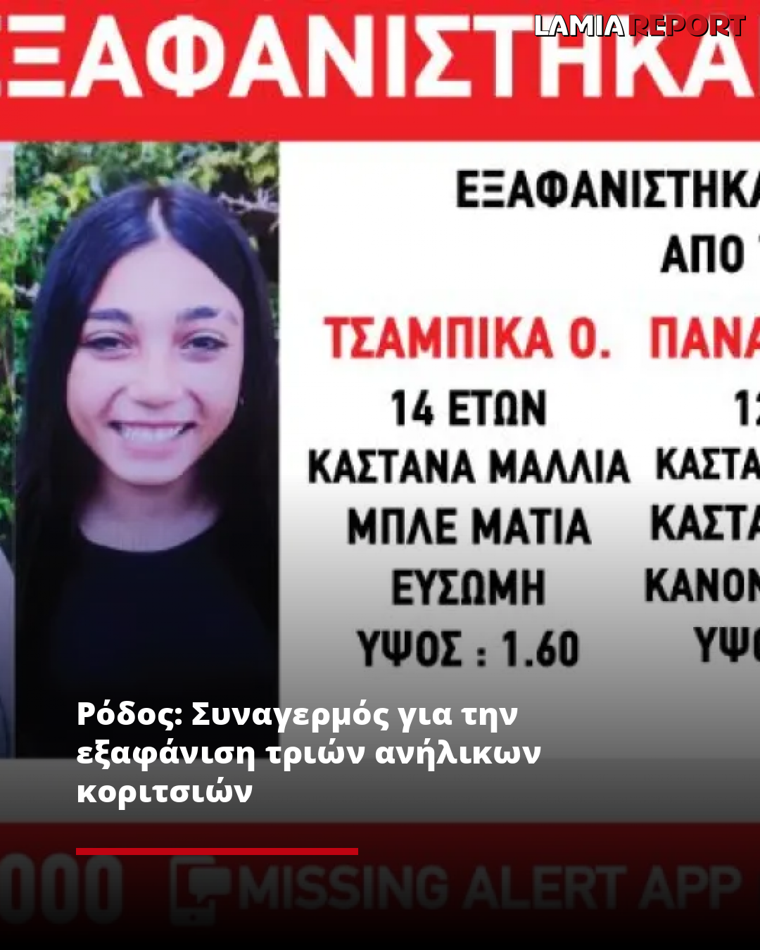 Συναγερμός έχει σημάνει στις Αρχές έπειτα από την εξαφάνιση τριών ανήλικων κοριτσιών στη Ρόδο και συγκεκριμένα από τον χώρο φιλοξενίας στον οποίο διέμεναν.