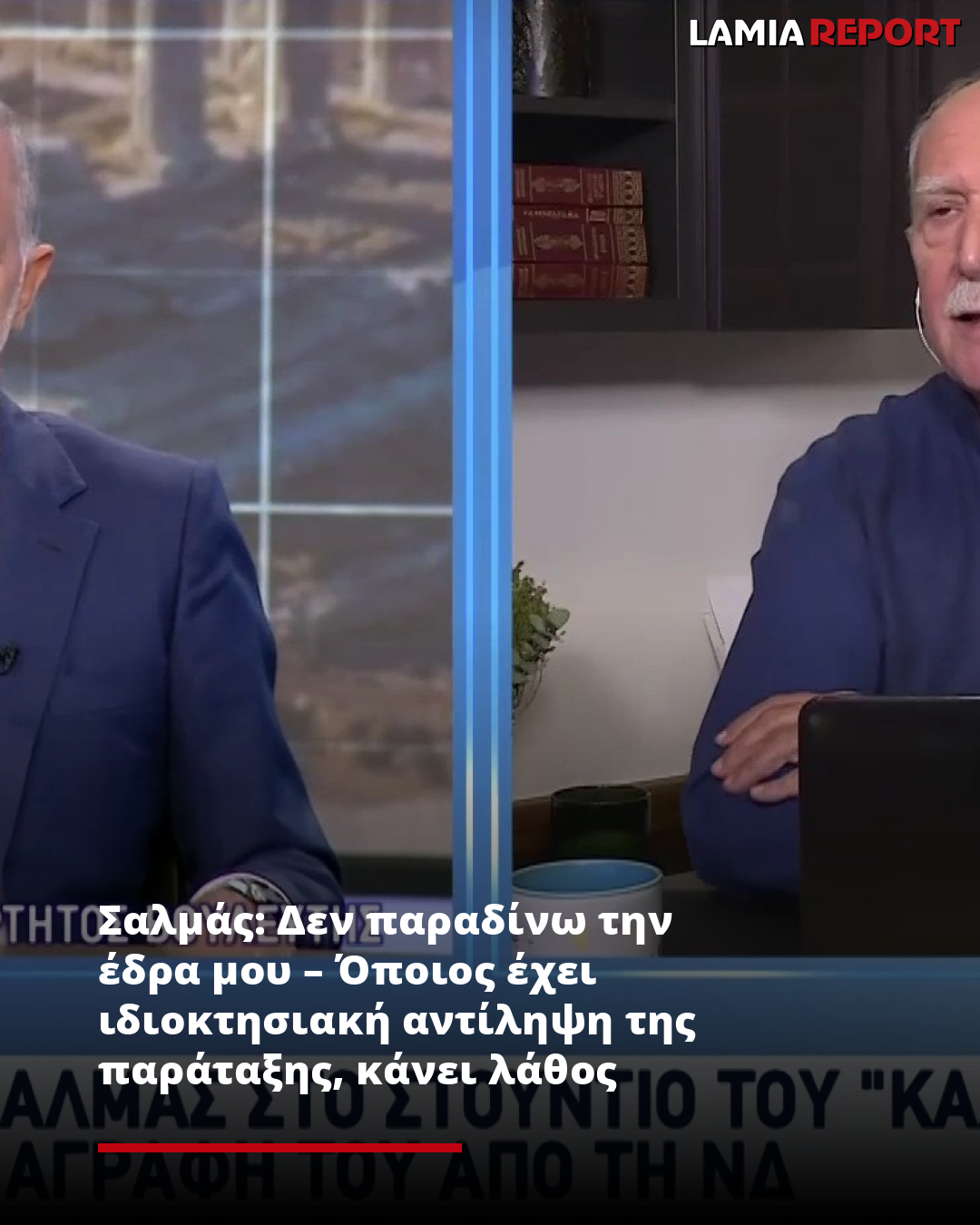 Ο Μάριος Σαλμάς αποδίδει τη διαγραφή του στον διάλογο που είχε με τον πρωθυπουργό κατά τη διάρκεια της συνεδρίασης της Κοινοβουλευτικής Ομάδας της ΝΔ και υποστήριξε πως τον αποκαλύπτει για πρώτη φορά στον Γιώργο Παπαδάκη και τους τηλεθεατές.