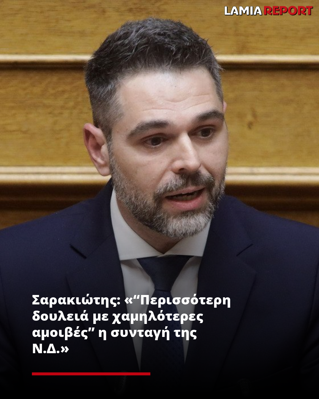 Για το σχέδιο νόμου του Υπουργείου Εργασίας και Κοινωνικής Ασφάλισης, το οποίο συζητείται στη Βουλή, τοποθετήθηκε ο Βουλευτής Φθιώτιδας Γιάννης Σαρακιώτης, επισημαίνοντας μεταξύ άλλων ότι «η Κυβέρνηση, κατά την πάγια τακτική της, καταλύει τις εργασιακές σχέσεις, μειώνει τα δικαιώματα των εργαζομένων και αυξάνει τις ώρες εργασίας, τη στιγμή που οι αμοιβές παραμένουν καθηλωμένες στο ναδίρ της Ευρωπαϊκής Ένωσης».