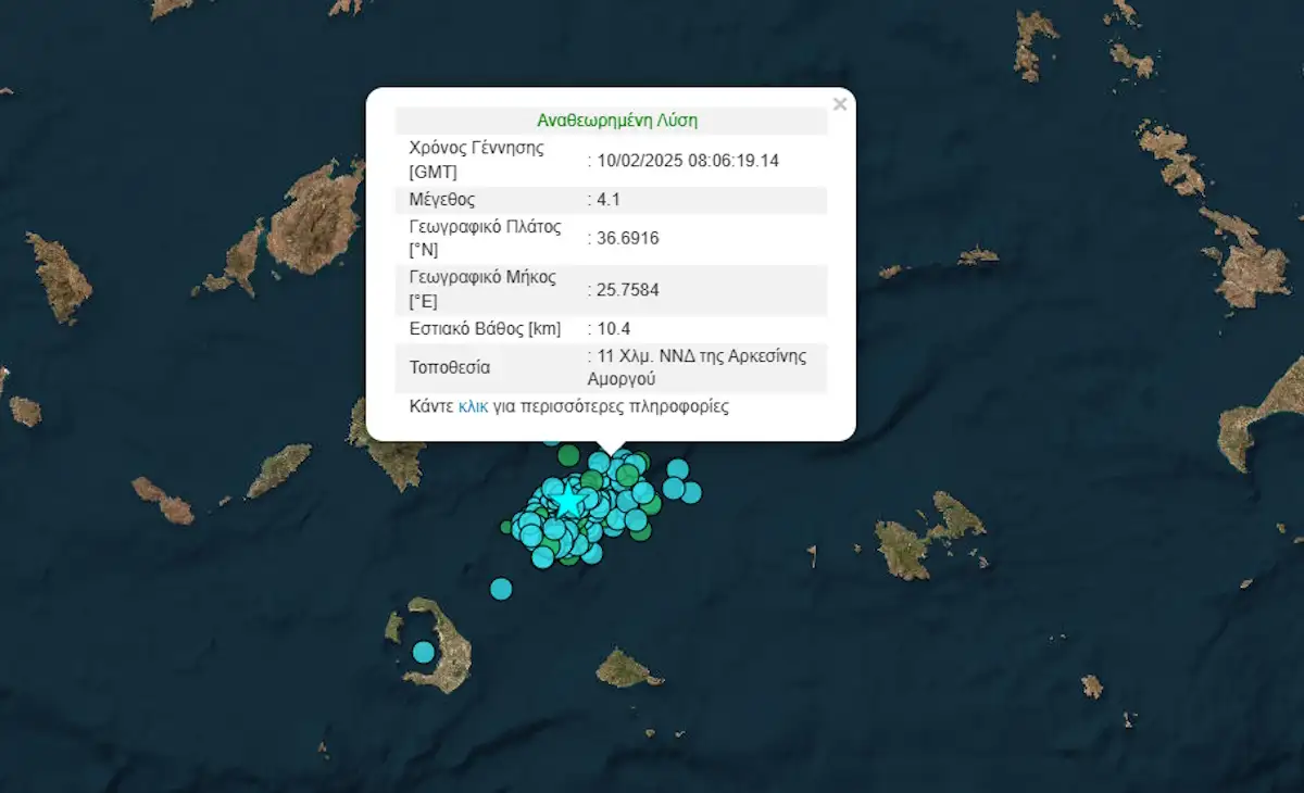 Στις 10:06 σημειώθηκε ένας νέος σεισμός 4,1 Ρίχτερ, ενώ λίγα λεπτά μετά ακολούθησε νέα δόνηση ίδιου μεγέθους
