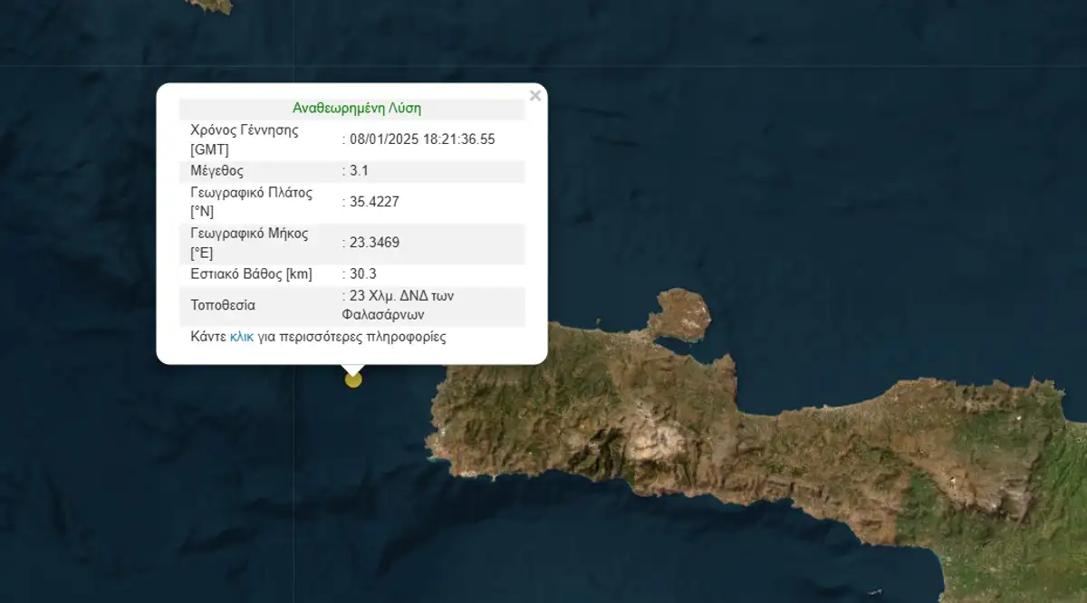 Το επίκεντρο του σεισμού ήταν 23 χλμ. από τα Φαλάσαρνα της Κρήτης
