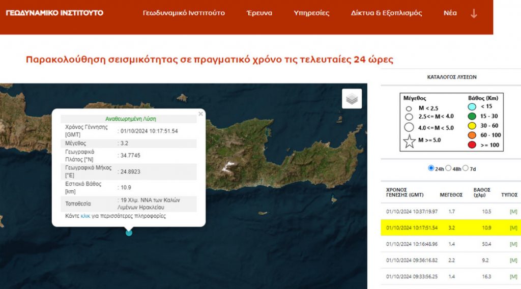 Σεισμός 3,2 Ρίχτερ στους Καλούς Λιμένες του νομού Ηρακλείου