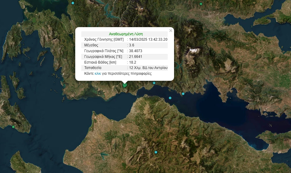 Σεισμός 3,6 Ρίχτερ σημειώθηκε το μεσημέρι της Δευτέρας στο Αντίρριο.