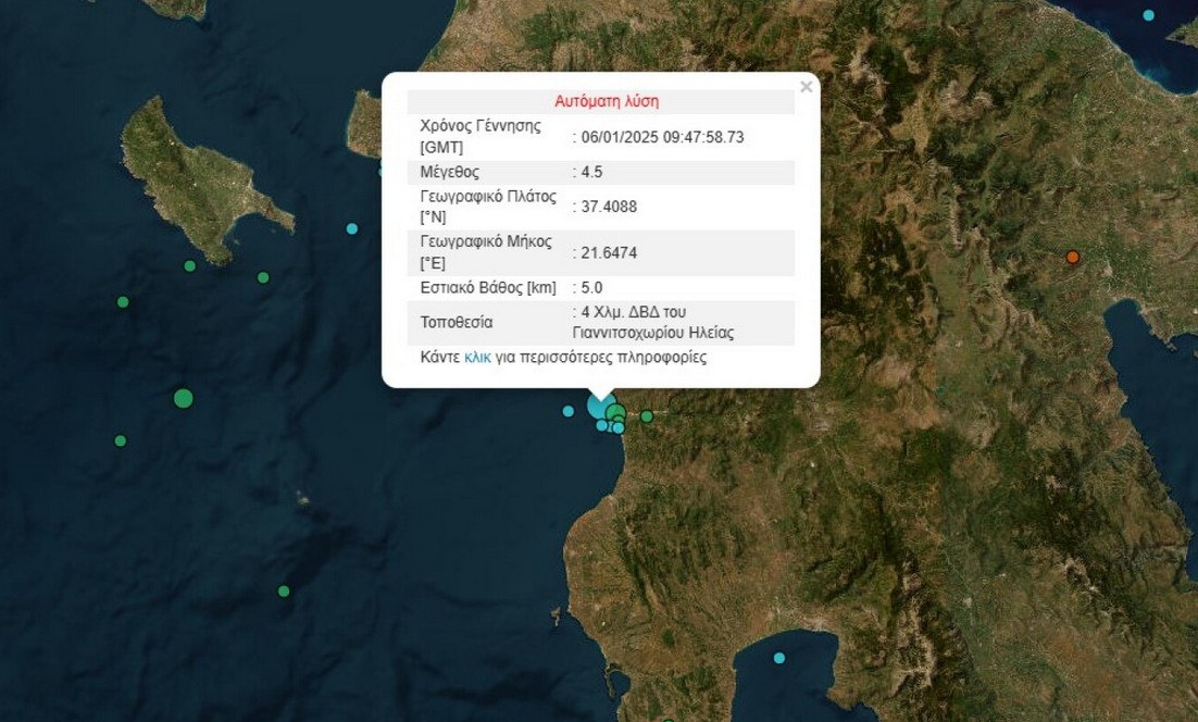 Σεισμός 4,5 Ρίχτερ στην Ηλεία