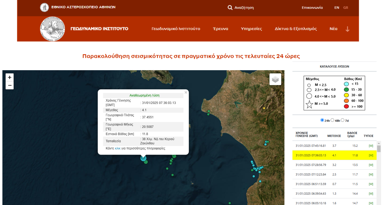 Σεισμός τώρα 4,1 Ρίχτερ στα ανοιχτά της Ζακύνθου