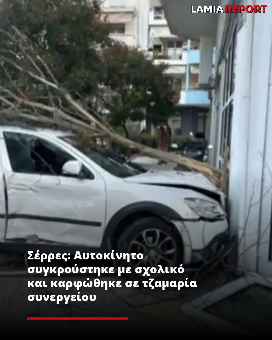 Σέρρες: Αυτοκίνητο συγκρούστηκε με σχολικό και καρφώθηκε σε τζαμαρία συνεργείου