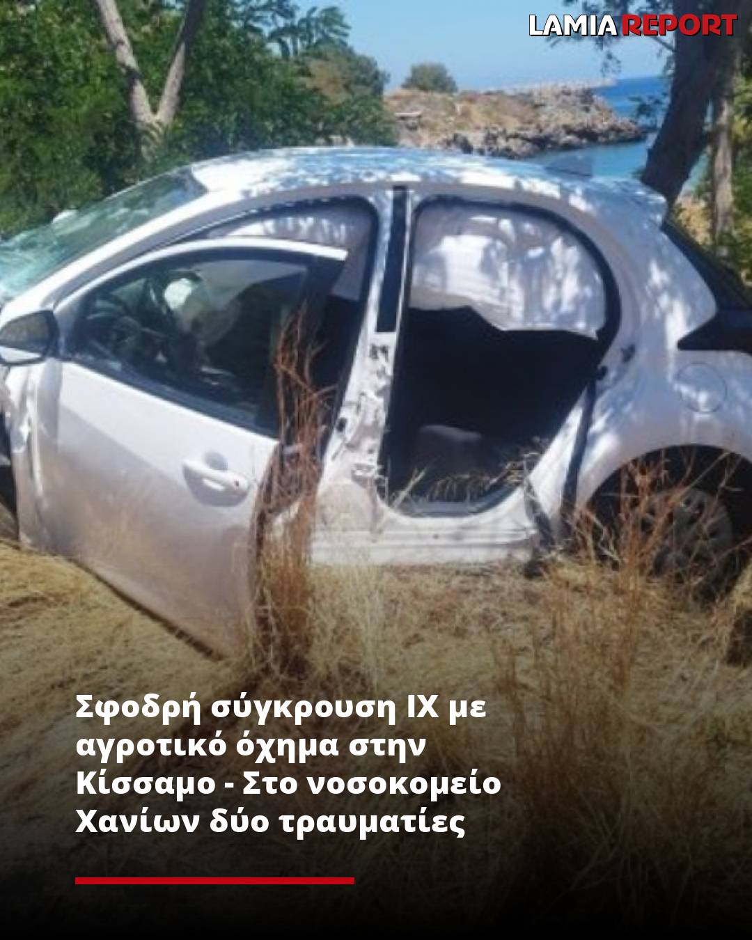 Σφοδρή σύγκρουση ΙΧ με αγροτικό όχημα στην Κίσσαμο - Στο νοσοκομείο Χανίων δύο τραυματίες