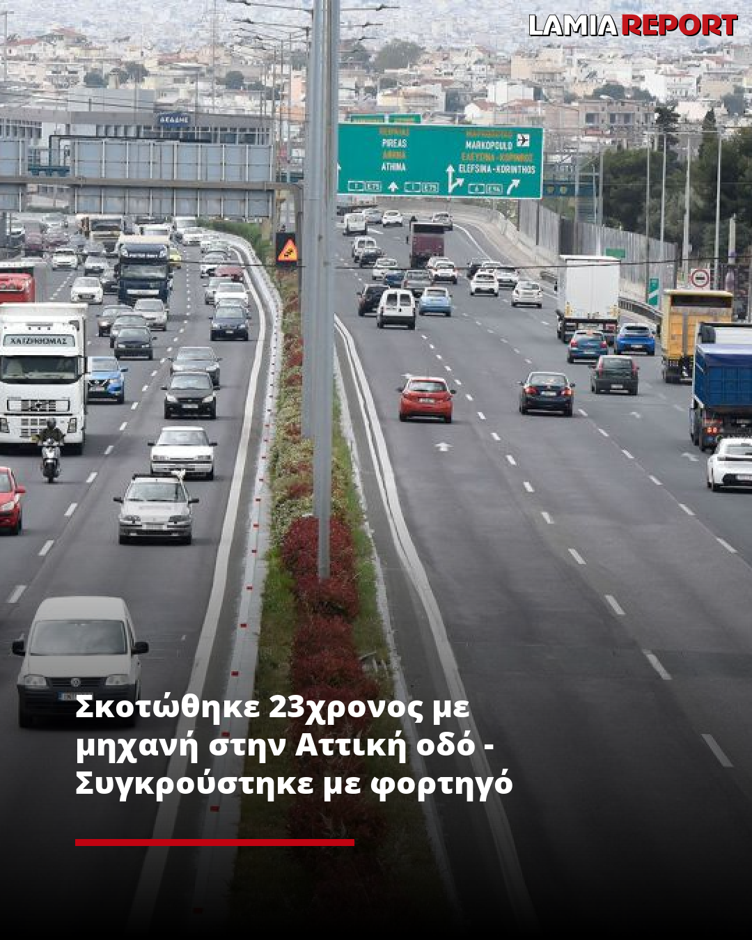 Σκοτώθηκε 23χρονος με μηχανή στην Αττική οδό - Συγκρούστηκε με φορτηγό
