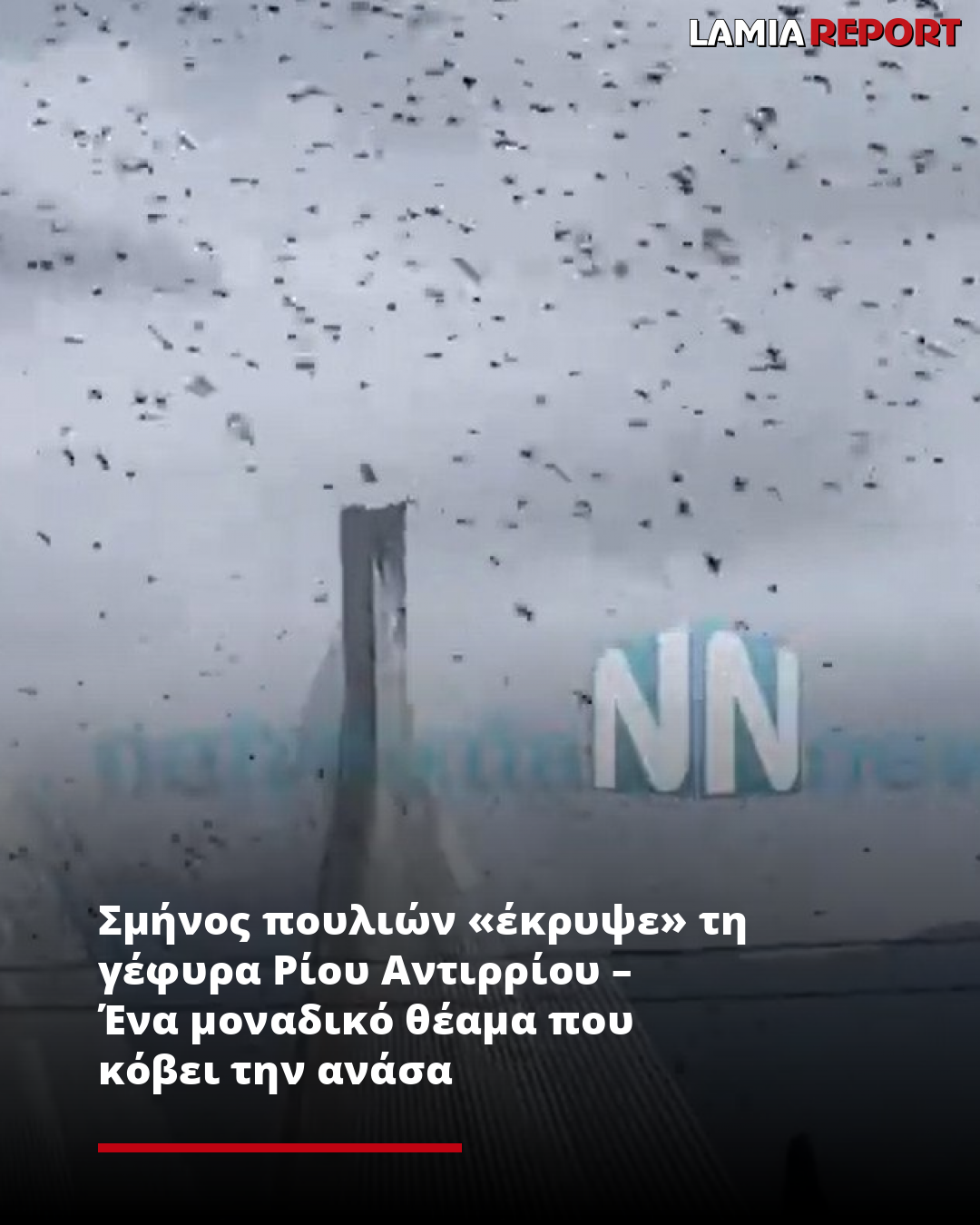 Ένα εντυπωσιακό φαινόμενο εκτυλίχθηκε πάνω από τη γέφυρα Ρίου-Αντιρρίου, όταν ένα σμήνος πουλιών από καραβέλια σκέπασαν τον ουρανό, δημιουργώντας μια εικόνα που έμοιαζε να «εξαφανίζει» τη γέφυρα.