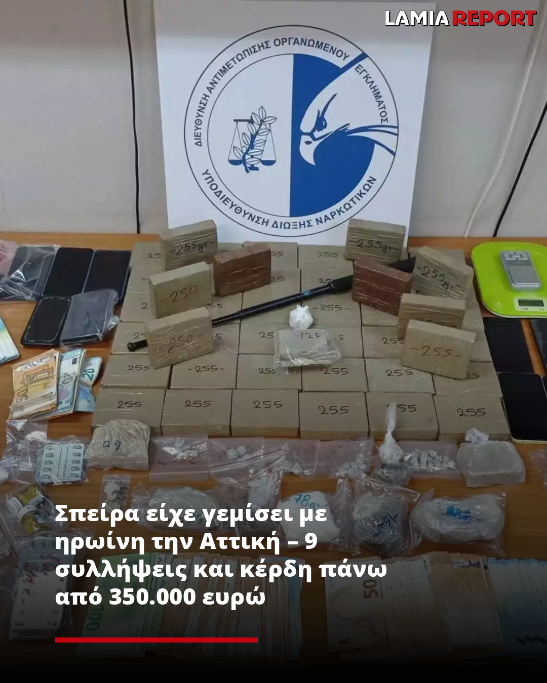 Στην εξάρθρωση μιας μεγάλης σπείρας που διοχέτευε ηρωίνη σε όλη την Αττική, προχώρησε η αστυνομία, ενώ συνέλαβε 9 άτομα, οι 8 εκ των οποίων θεωρούνται μέλη της οργάνωσης.