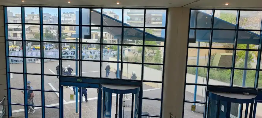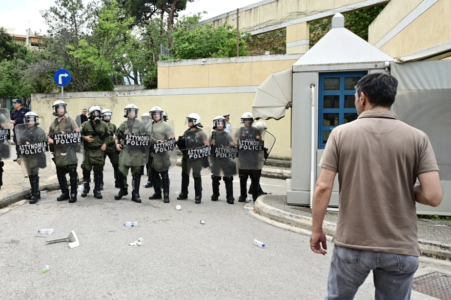 Λίγη ώρα αργότερα κάποιοι από τους συγκεντρωμένους προσπάθησαν να μπουν στο κτήριο του υπουργείου από μια πλαϊνή είσοδο αλλά τους σταμάτησαν άνδρες των ΜΑΤ που είχαν παραταχθεί.