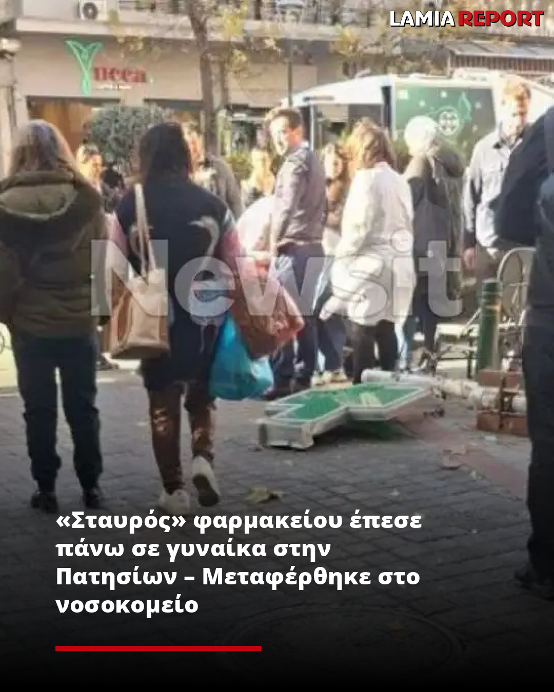 Σύμφωνα με το newsit.gr, ατύχημα σημειώθηκε το μεσημέρι της Πέμπτης (8.1.25) όταν «σταυρός» φαρμακείου έπεσε πάνω σε γυναίκα στην οδό Πατησίων στο κέντρο της Αθήνας.