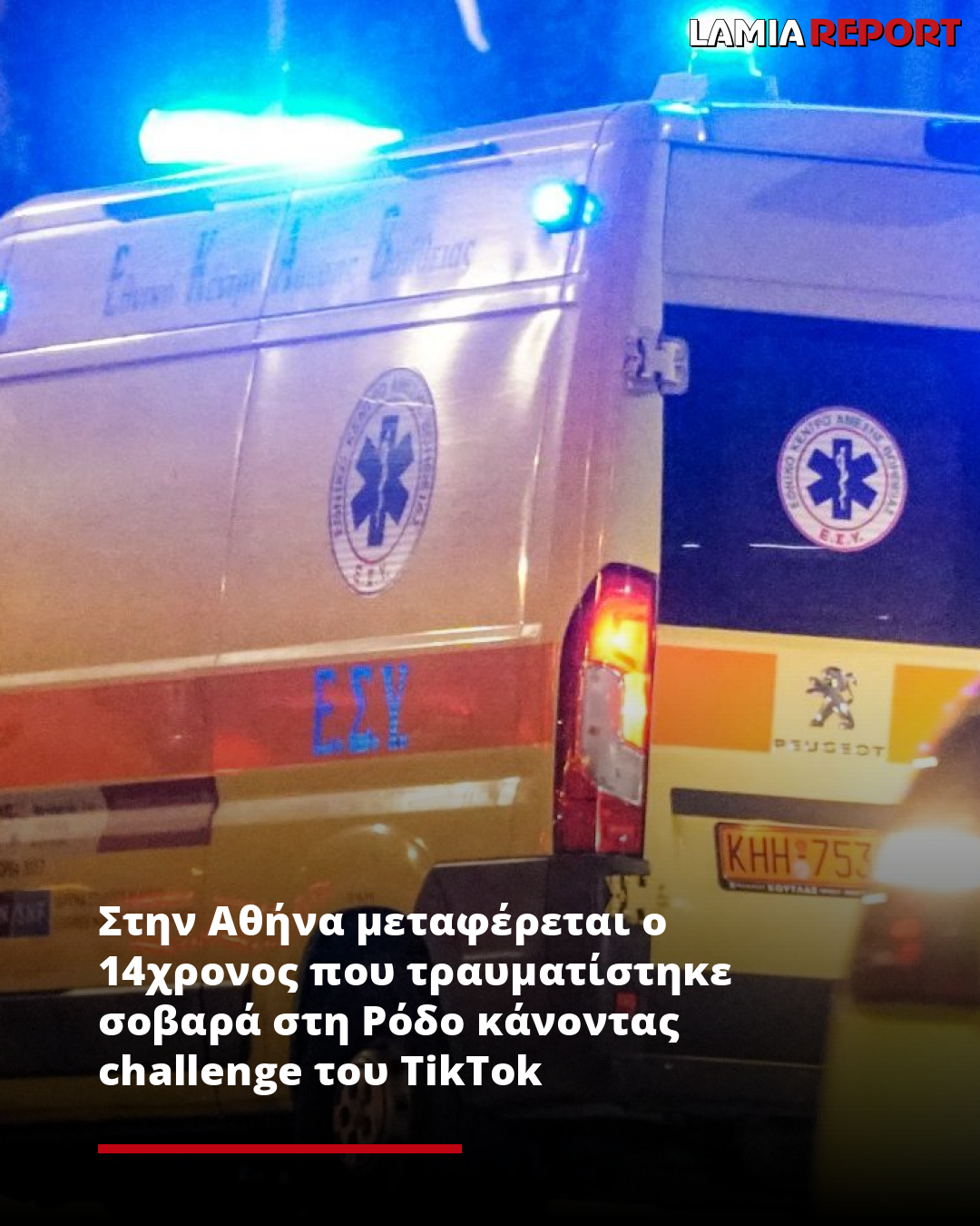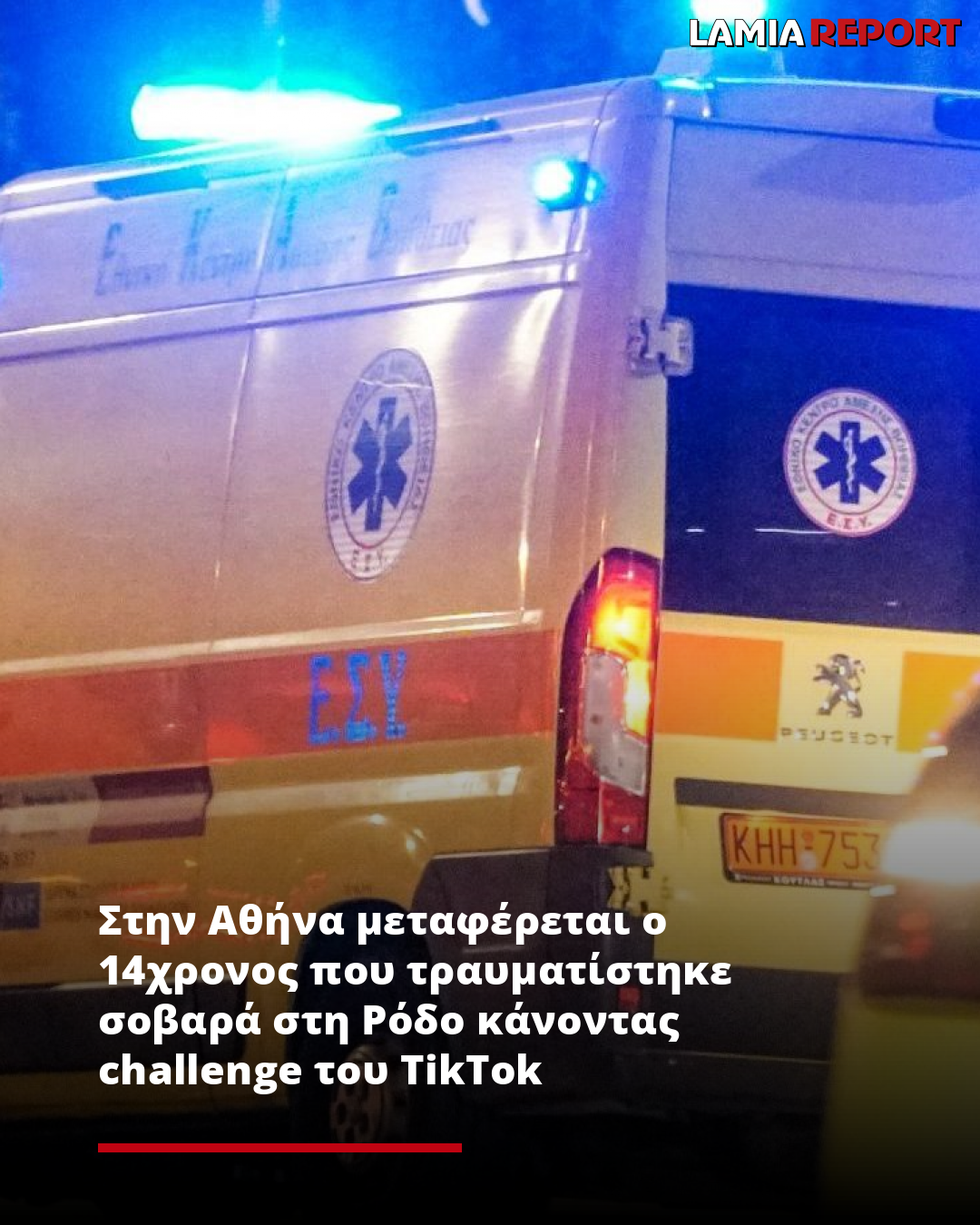 Σε νοσοκομείο της Αθήνας μεταφέρεται ο 14χρονος από τη Ρόδο που τραυματίστηκε σοβαρά κατά τη διάρκεια σχολικού διαλείμματος, όταν επιχείρησε μια δοκιμασία – challenge του TikTok.