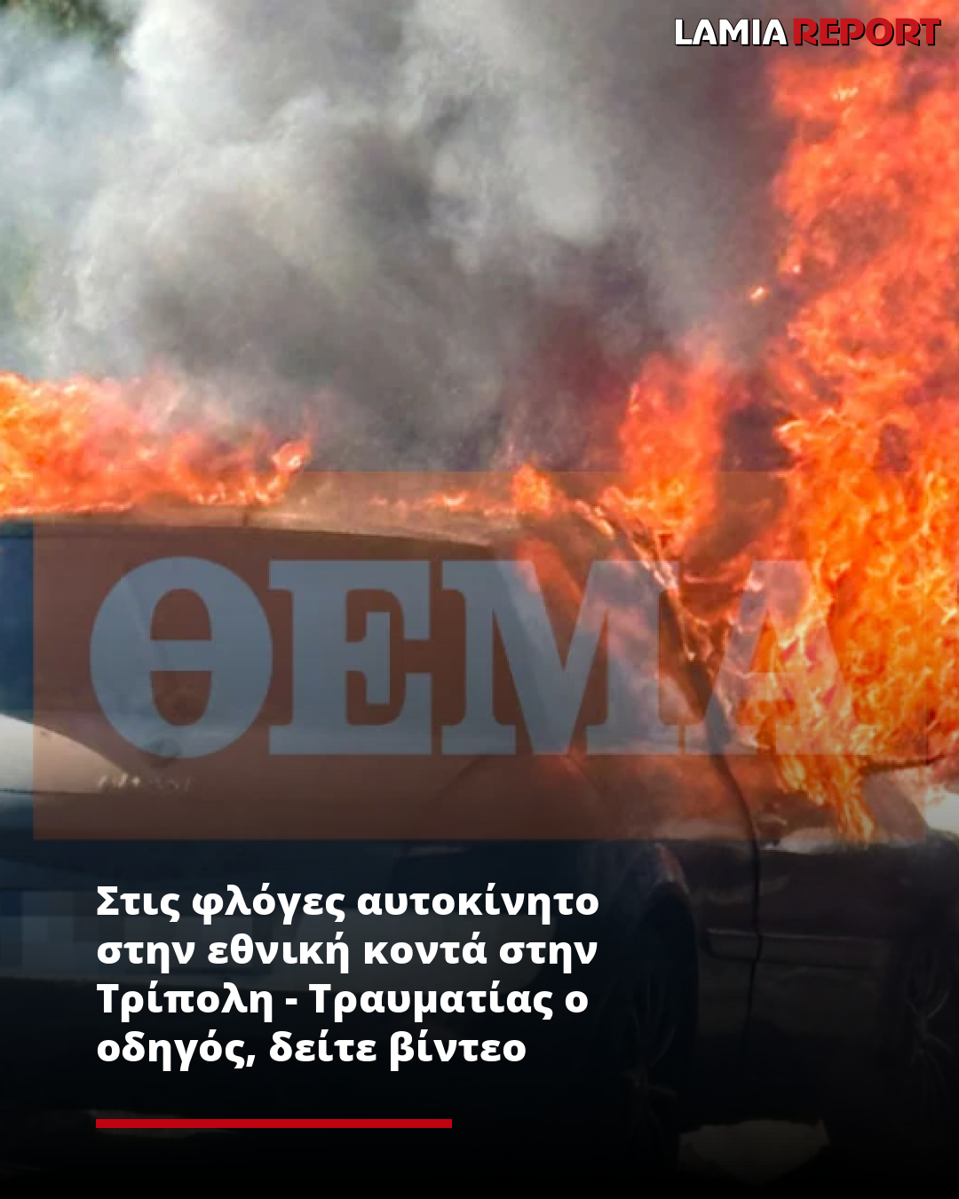 Στις φλόγες αυτοκίνητο στην εθνική κοντά στην Τρίπολη - Τραυματίας ο οδηγός, δείτε βίντεο