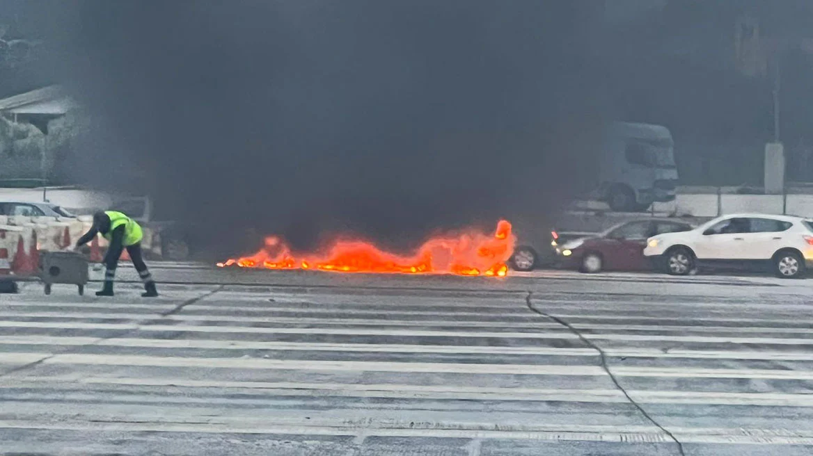 Στο σημείο επικράτησε πανικός καθώς οδηγοί κόρναραν για να απεγκλωβιστούν από τη λωρίδα όπου καιγόταν το αυτοκίνητο.