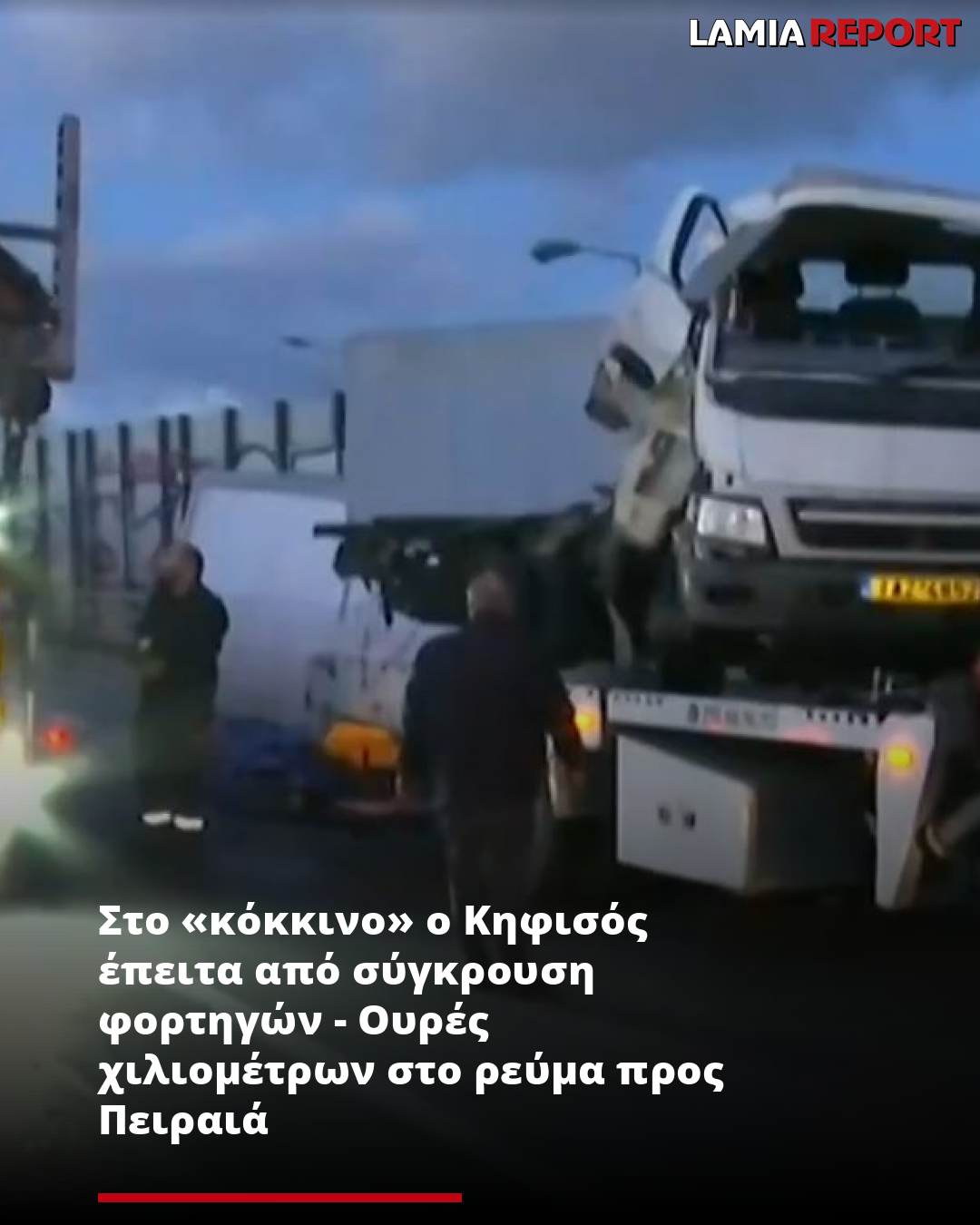 Στο «κόκκινο» ο Κηφισός έπειτα από σύγκρουση φορτηγών - Ουρές χιλιομέτρων στο ρεύμα προς Πειραιά