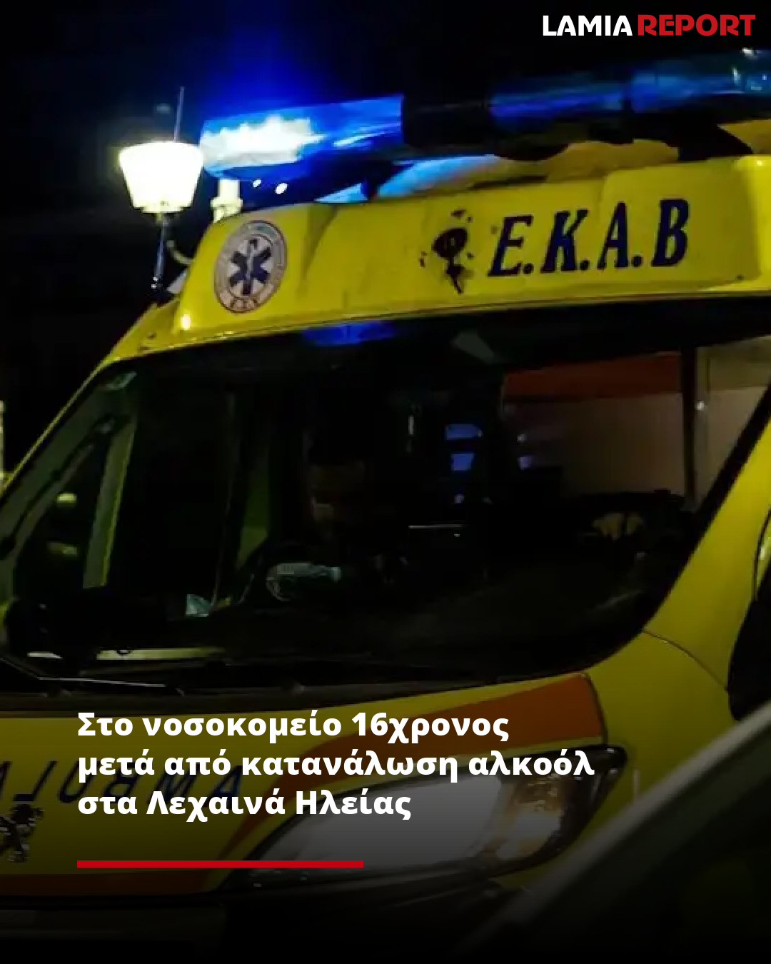 Στο νοσοκομείο Πύργου μεταφέρθηκε τα ξημερώματα της Τετάρτης ένας 16χρονος, αφού κατανάλωσε μεγάλη ποσότητα αλκοόλ σε μπαρ στα Λεχαινά Ηλείας.