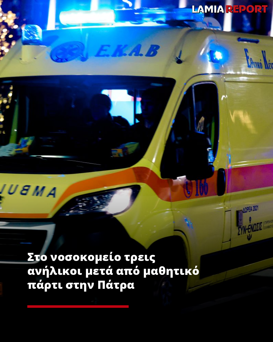 Στο Πανεπιστημιακό Νοσοκομείο της Πάτρας κατέληξαν τρεις ανήλικοι το βράδυ του Σαββάτου, οι οποίοι, σύμφωνα με πληροφορίες του tempo24, συμμετείχαν σε μαθητικό πάρτι που γινόταν σε σπίτι στην περιοχή Σούλι, χωρίς την παρουσία ενηλίκων.