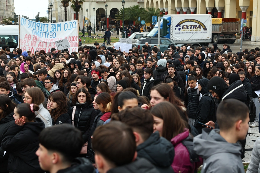 Συγκεντρώσεις μαθητών και φοιτητών έγιναν σήμερα, Παρασκευή, και στη Θεσσαλονίκη και σε άλλες πόλεις για την τραγωδία των Τεμπών.