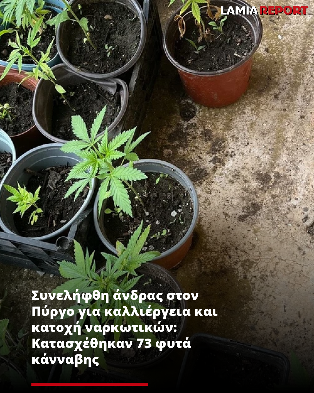 Συνελήφθη άνδρας στον Πύργο για καλλιέργεια και κατοχή ναρκωτικών: Κατασχέθηκαν 73 φυτά κάνναβης