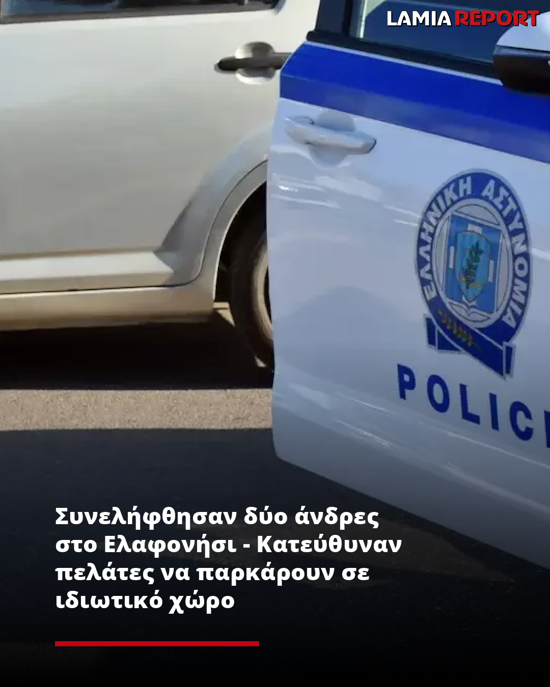 Στη σύλληψη δύο ανδρών, ηλικίας 20 και 27 ετών, προχώρησε το μεσημέρι της Δευτέρας (6/10) η Αστυνομία, στο Ελαφονήσι στα Χανιά, οι οποίοι έλεγαν σε επισκέπτες και τουρίστες να σταθμεύσουν σε συγκεκριμένα πάρκινγκ, γιατί υποτίθεται ότι πιο κάτω δε θα βρουν ελεύθερη θέση για να σταθμεύσουν το όχημά τους.