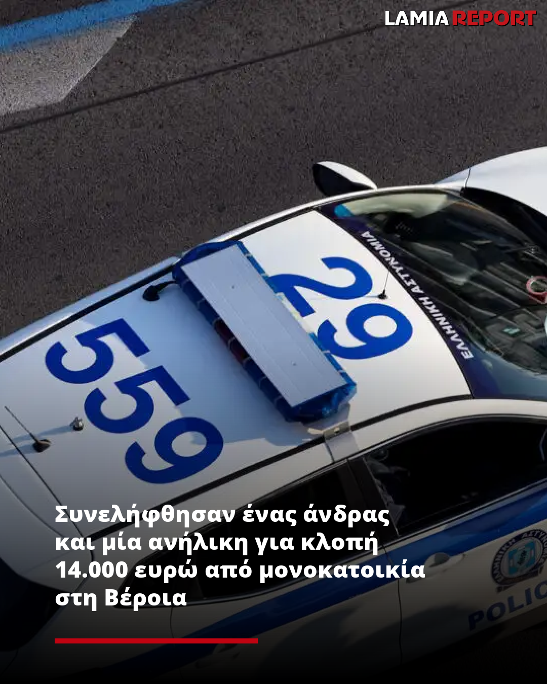 Συνελήφθησαν ένας άνδρας και μία ανήλικη για κλοπή 14.000 ευρώ από μονοκατοικία στη Βέροια