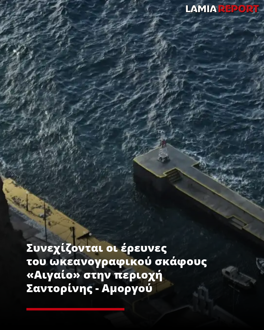 Συνεχίζονται οι έρευνες του Ωκεανογραφικού Σκάφους Ω/Κ ΑΙΓΑΙΟ του Ελληνικού Κέντρου Θαλάσσιων Ερευνών (ΕΛΚΕΘΕ) στην περιοχή Σαντορίνης - Αμοργού, προκειμένου να συλλέξει πρόσθετα δεδομένα για την πληρέστερη κατανόηση της σεισμικής δραστηριότητας που εξελίσσεται.