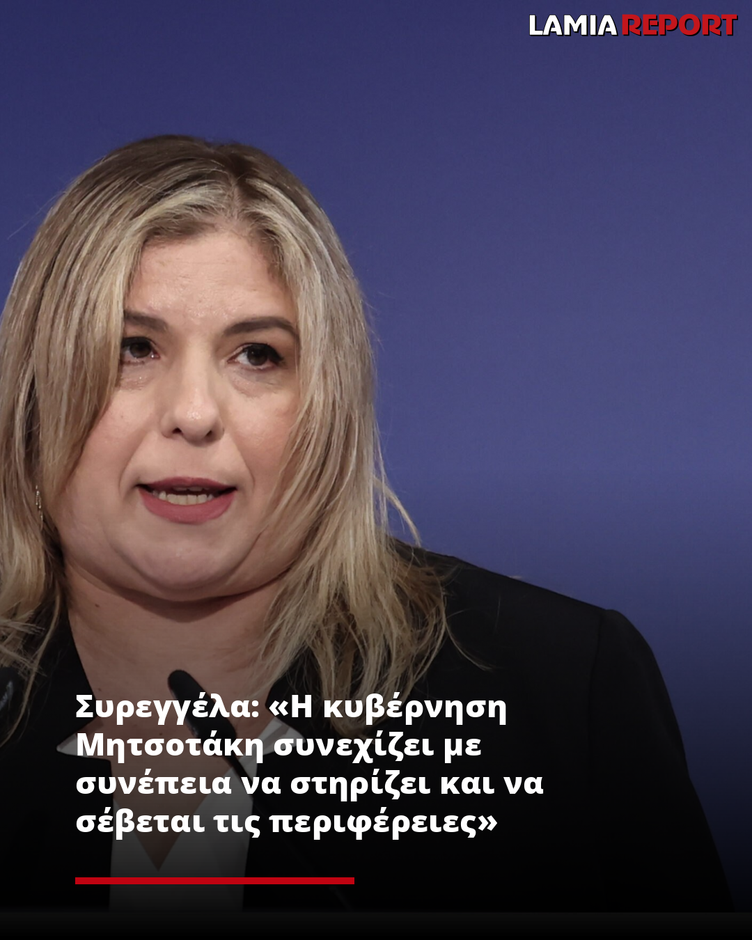 Συρεγγέλα: «Η κυβέρνηση Μητσοτάκη συνεχίζει με συνέπεια να στηρίζει και να σέβεται τις περιφέρειες»
