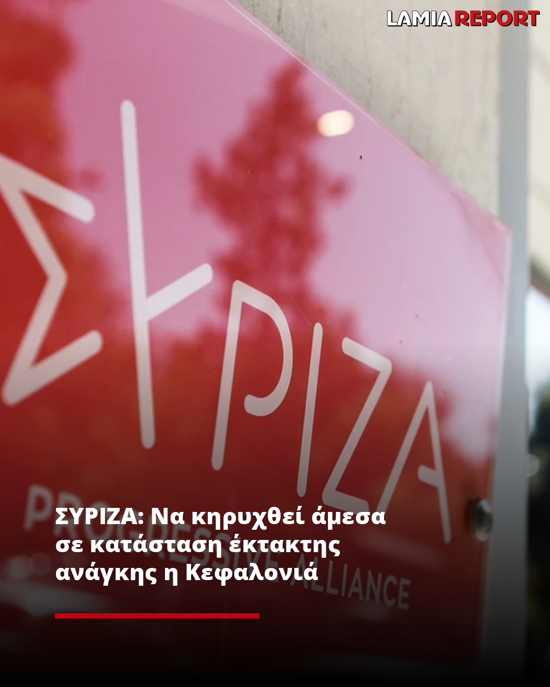Nα κηρυχθεί άμεσα σε κατάσταση έκτακτης ανάγκης η Κεφαλονιά, ζητεί ο ΣΥΡΙΖΑ με ανακοίνωσή του λόγω των καιρικών φαινομένων που έπληξαν το νησί.