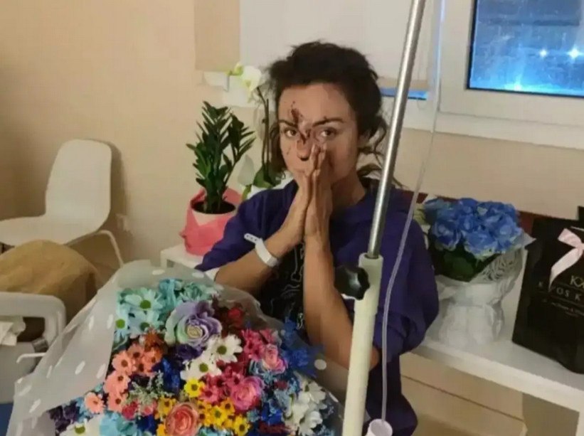 Η Ευδοκία Τσαγκλή επιζήσασα των Τεμπών με εμφανή τα τραύματα στο πρόσωπό της