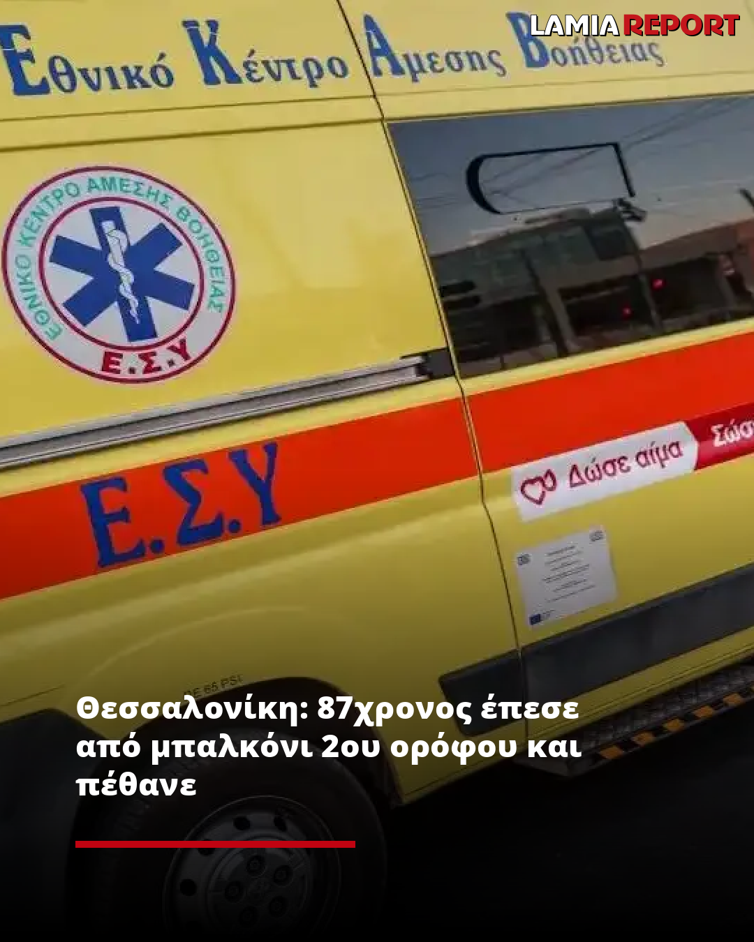 Σύμφωνα με το newsit.gr, ένα τραγικό περιστατικό συνέβη σήμερα (26/2/2026) το μεσημέρι στη Θεσσαλονίκη όταν 87χρονος έπεσε στο κενό από μπαλκόνι 2ου ορόφου και έχασε την ζωή του.
