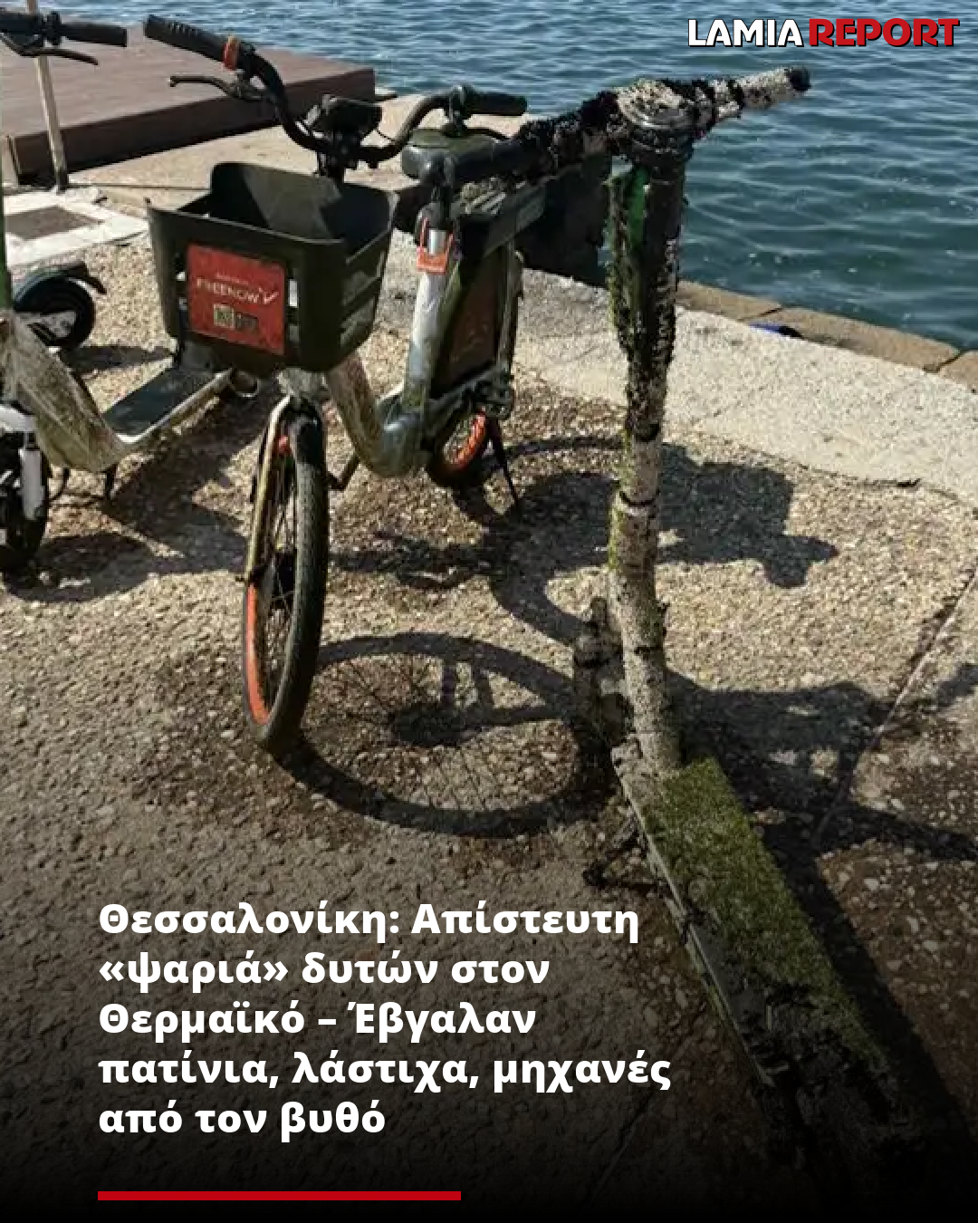 Και δεν τι περιελάμβανε η ψαριά τους. Πατίνια, λάστιχα, ηλεκτρικά ποδήλατα και μηχανές ήταν μερικά από τα αντικείμενα που βρήκαν στον βυθό του Θερμαϊκού Κόλπου οι δύτες από τη Θεσσαλονίκη.