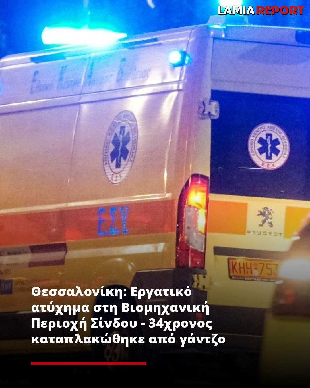 Θεσσαλονίκη: Εργατικό ατύχημα στη Βιομηχανική Περιοχή Σίνδου - 34χρονος καταπλακώθηκε από γάντζο