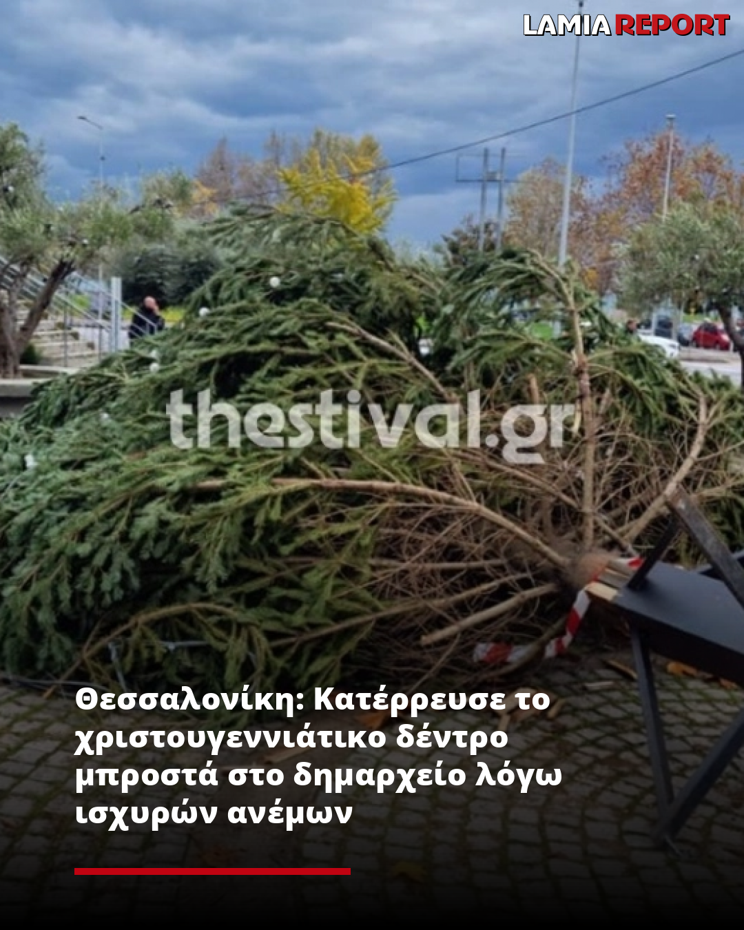 Θεσσαλονίκη: Κατέρρευσε το χριστουγεννιάτικο δέντρο μπροστά στο δημαρχείο λόγω ισχυρών ανέμων