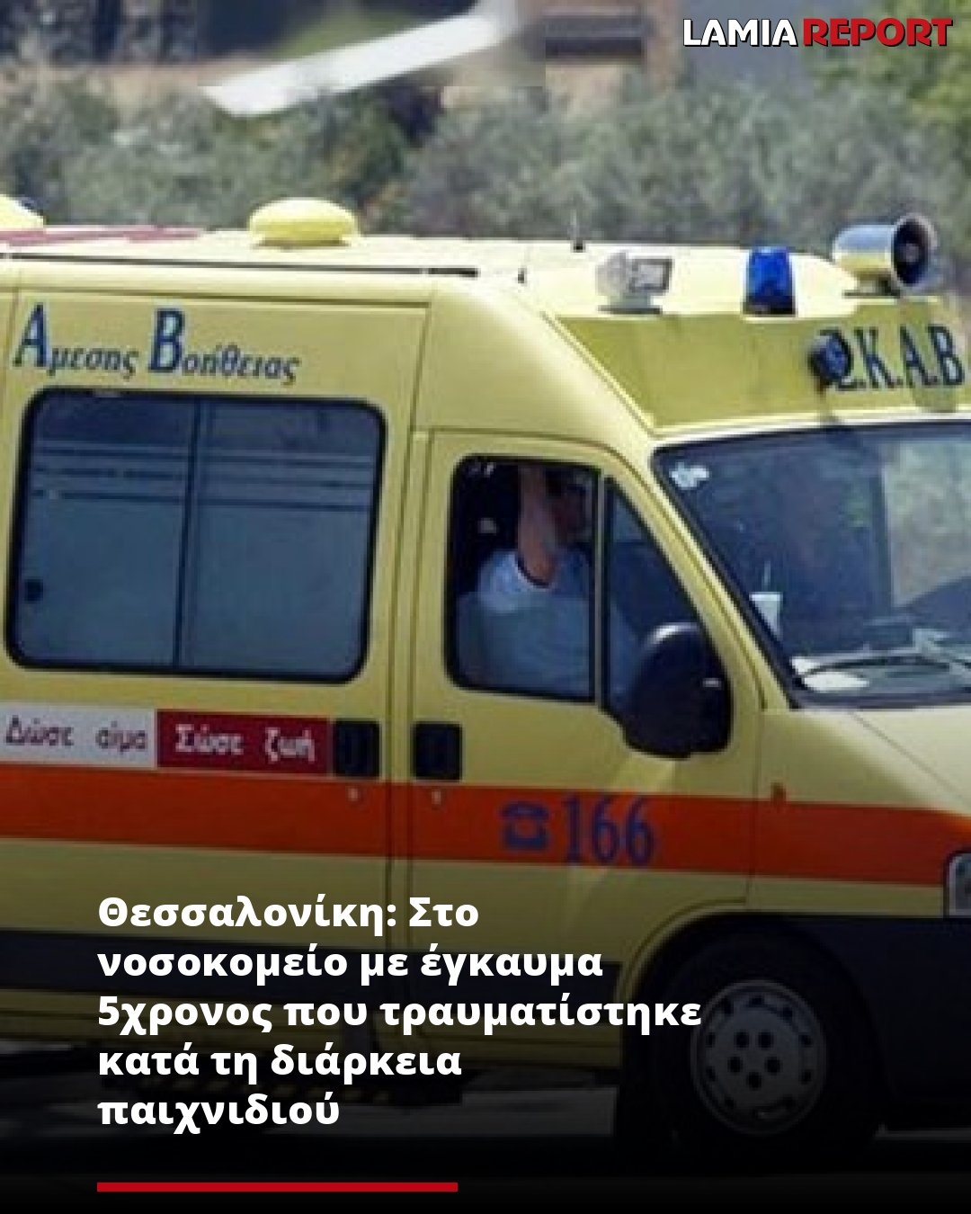 Στο νοσοκομείο μεταφέρθηκε ένα πεντάχρονο αγόρι το οποίο τραυματίστηκε κατά τη διάρκεια παιχνιδιού στη Θεσσαλονίκη.